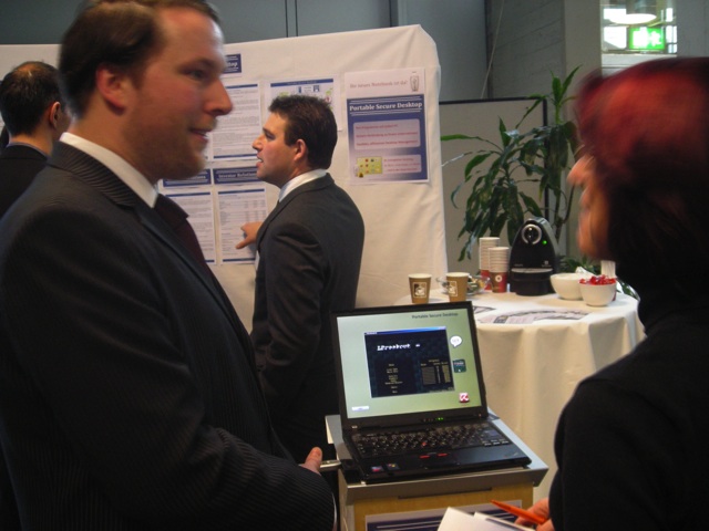 Carsten Krause (St@rt, Zentrum für Technologie und Existenzgründung GmbH), Kristian Nix, Tim Ludwig (beide Trade Fair Team Portable Security) und Silke Keul (hgnc)